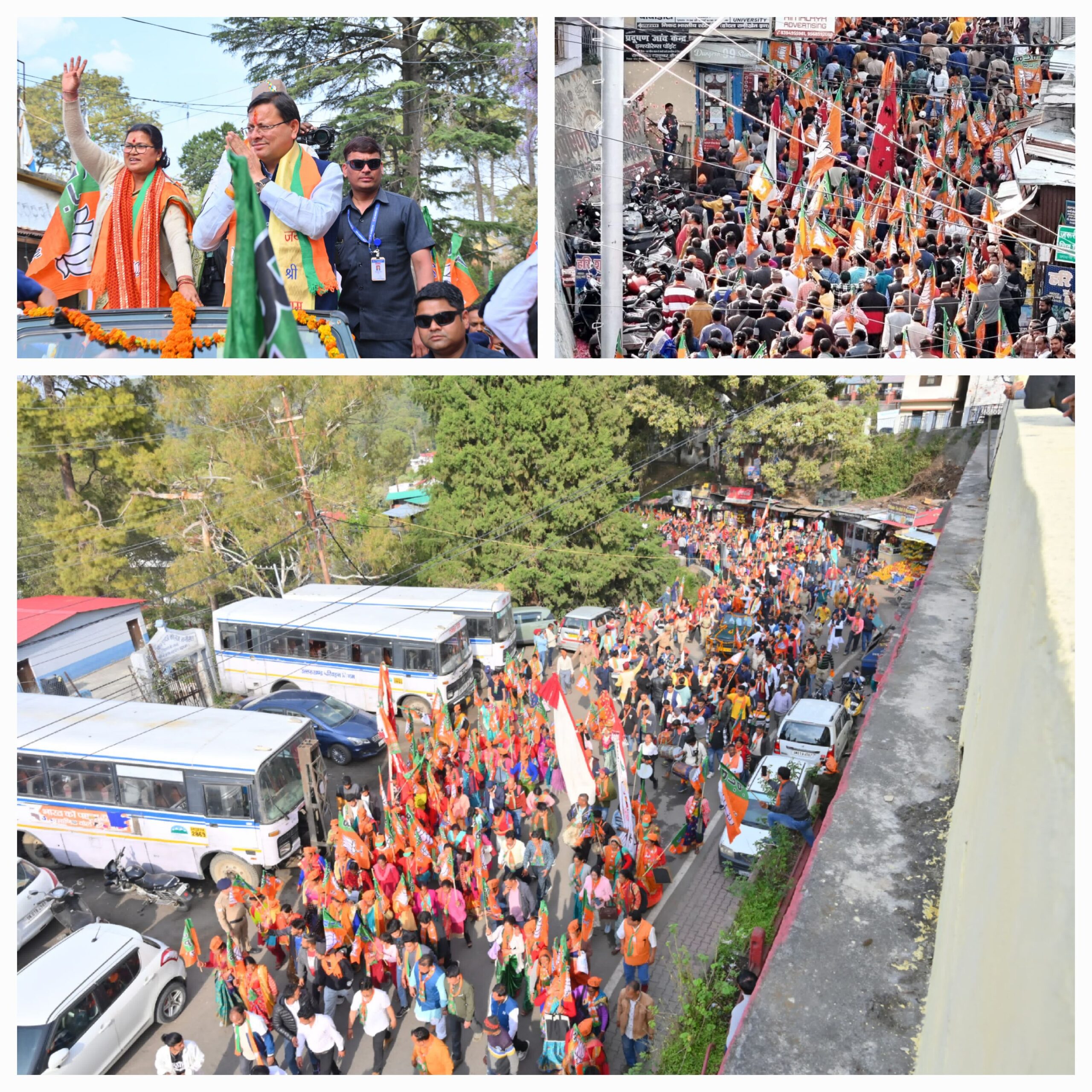 रानीखेत, अल्मोड़ा में आयोजित रोड शो में सम्मिलित होकर मुख्यमंत्री धामी ने जनता से भाजपा प्रत्याशी अजय टम्टा को भारी मतों से विजयी बनाने की अपील की