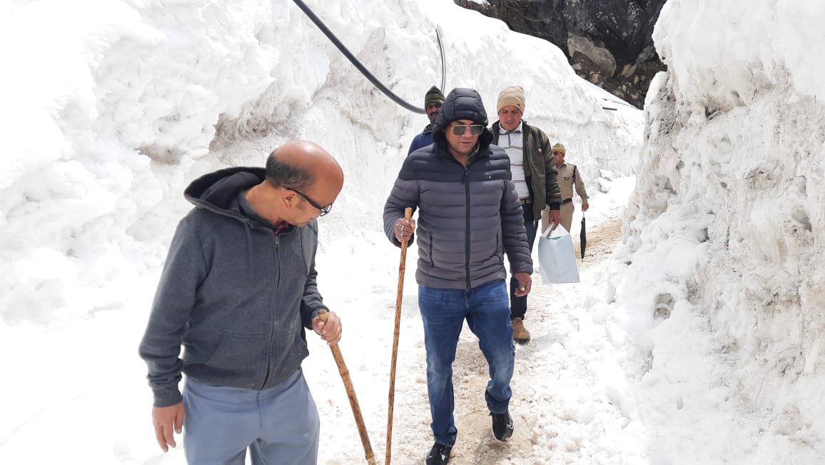 मौसम के बदले मिजाज और बर्फबारी के बीच पैदल मार्ग से केदारनाथ पहुंचे सचिव स्वास्थ्य