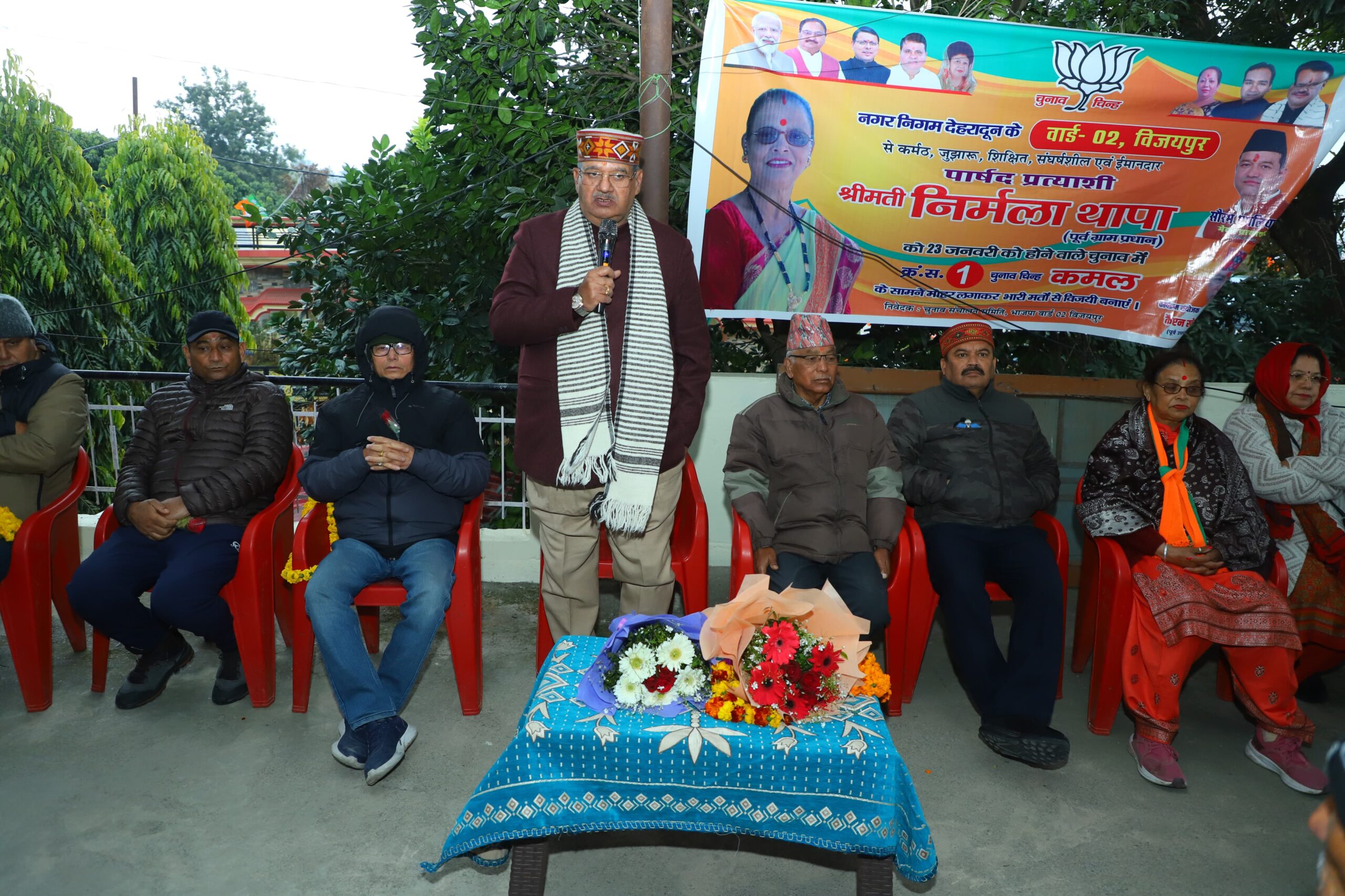 इस अवसर पर मंडल अध्यक्ष प्रदीप रावत मंडल अध्यक्ष ज्योति कोटिया, कार्यक्रम संयोजक कैप्टन खेम बहादुर थापा, शमशेर सिंह बिष्ट, पार्षद प्रत्याशी निर्मला थापा, पार्षद प्रत्याशी भावना चौधरी, पार्षद प्रत्याशी भूपेंद्र कठेत, संध्या थापा, विष्णु गुप्ता, बबीता सहलोत्रा, सतेंद्र नाथ, विनय गुप्ता सहित कई लोग उपस्थित रहे।