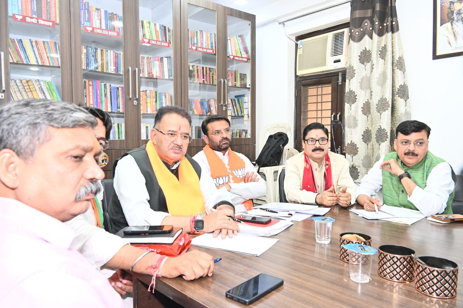 काबीना मंत्री गणेश जोशी ने आज दिल्ली के यमुना विहार स्थित उत्तर पूर्वी दिल्ली लोकसभा सीट से भाजपा सांसद प्रत्याशी मनोज तिवारी के लोकसभा चुनाव कार्यालय में चुनाव प्रचार के दृष्टिगत आगामी प्रस्तावित कार्यक्रमों के संबंध में विधानसभा प्रभारी और विधानसभा संयोजकों के साथ बैठक की गई।