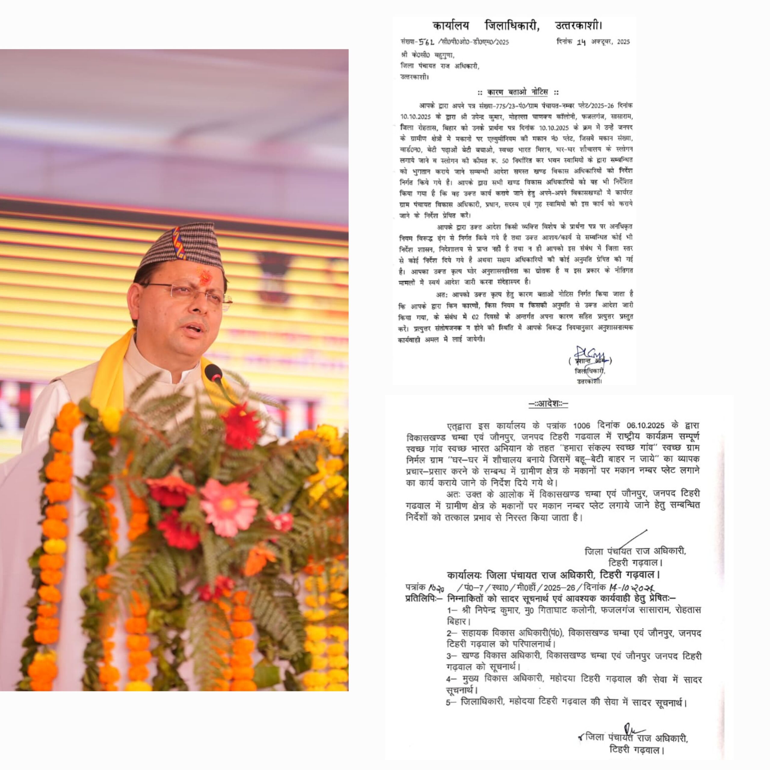मुख्यमंत्री श्री पुष्कर सिंह धामी ने सोशल मीडिया पर वायरल हुए पत्र का संज्ञान लेते हुए जिला पंचायतराज अधिकारी, टिहरी गढ़वाल के आदेश को तत्काल प्रभाव से रद्द करने के साथ ही मामले की पूरी जांच कराने और दोषियों के खिलाफ आवश्यक कार्रवाई सुनिश्चित करने के निर्देश भी जारी किए हैं।