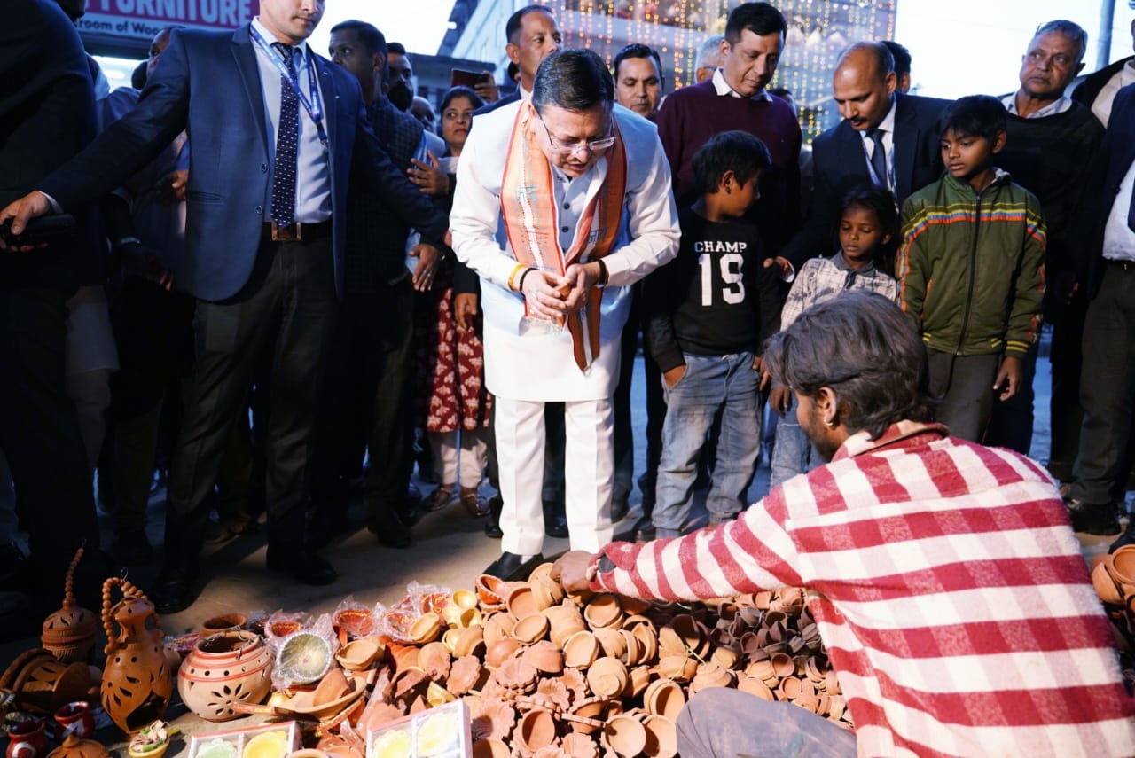 मुख्यमंत्री पुष्कर सिंह धामी ने शनिवार को कुम्हार मंडी क्षेत्र का भ्रमण कर दीपावली के अवसर पर मिट्टी के दिये व अन्य सामान तैयार करने वाले कुम्हारों से मिले तथा उन्हें दीपावली की शुभकामनाएं दी। मुख्यमंत्री ने स्वयं भी मिट्टी के दिये क्रय कर सभी से मिट्टी के दिये क्रय करने तथा दीपावली पर मिट्टी के दिये जलाने की अपील की। उन्होंने कहा कि मिट्टी के दिये दीपावली के पर्व को पावनता प्रदान करते हैं। मुख्यमंत्री ने कहा कि लोगों के घरों में दीपावली पर जलने वाले दिये कुम्हारों की खुशहाली तथा आर्थिक समृद्धि का भी माध्यम बनते हैं।