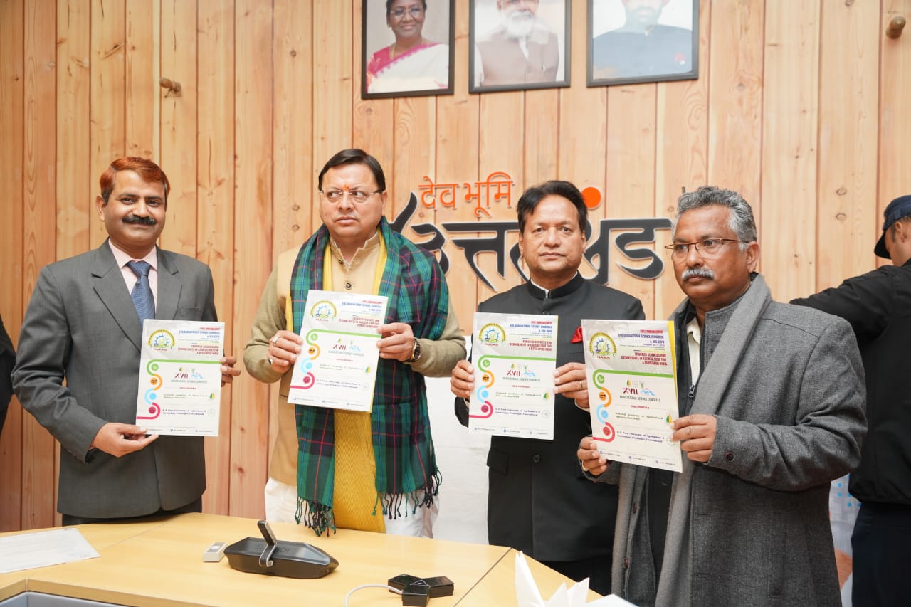 मुख्यमत्री श्री पुष्कर सिंह धामी ने गुरूवार को मुख्यमंत्री आवास में 17वें कृषि विज्ञान सम्मेलन एवं कृषि प्रदर्शनी के ब्रोशर और पोस्टर का विमोचन किया। यह कृषि महाकुंभ 20 फरवरी से 22 फरवरी 2025 को गोविंद बल्लभ पंत कृषि एवं प्रौद्योगिकी विश्वविद्यालय, पंतनगर में प्रस्तावित है जो कि