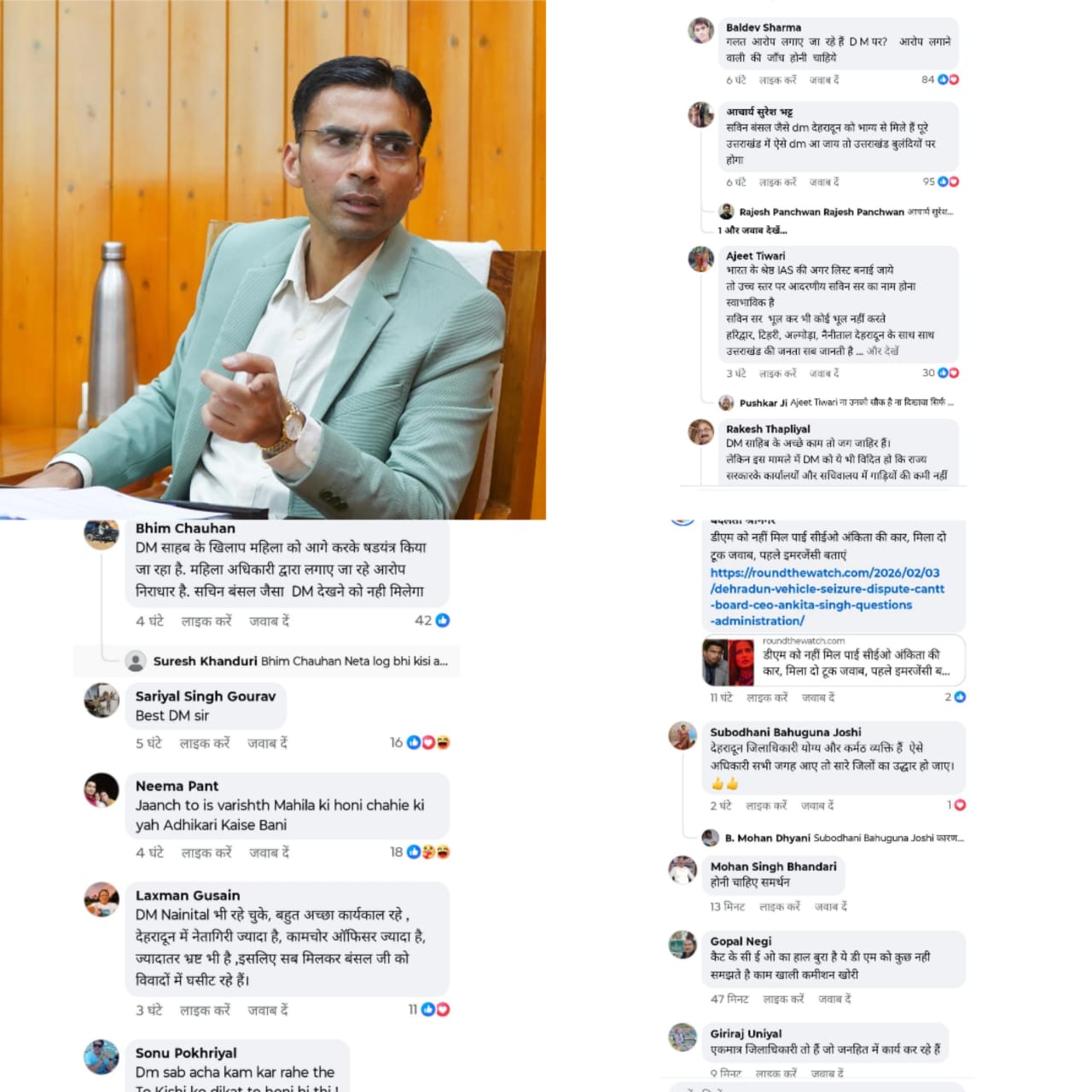 देहरादून। जिलाधिकारी सविन बंसल को लेकर इन दिनों सोशल मीडिया पर जबरदस्त प्रतिक्रिया देखने को मिल रही है। विभिन्न प्लेटफॉर्म पर आम नागरिकों द्वारा उनके समर्थन में बड़ी संख्या में कमेंट और प्रतिक्रियाएं सामने आ रही हैं, जो उनके प्रशासनिक कार्यों और जनसेवा की कार्यशैली को लेकर लोगों के भरोसे को दर्शाती हैं।