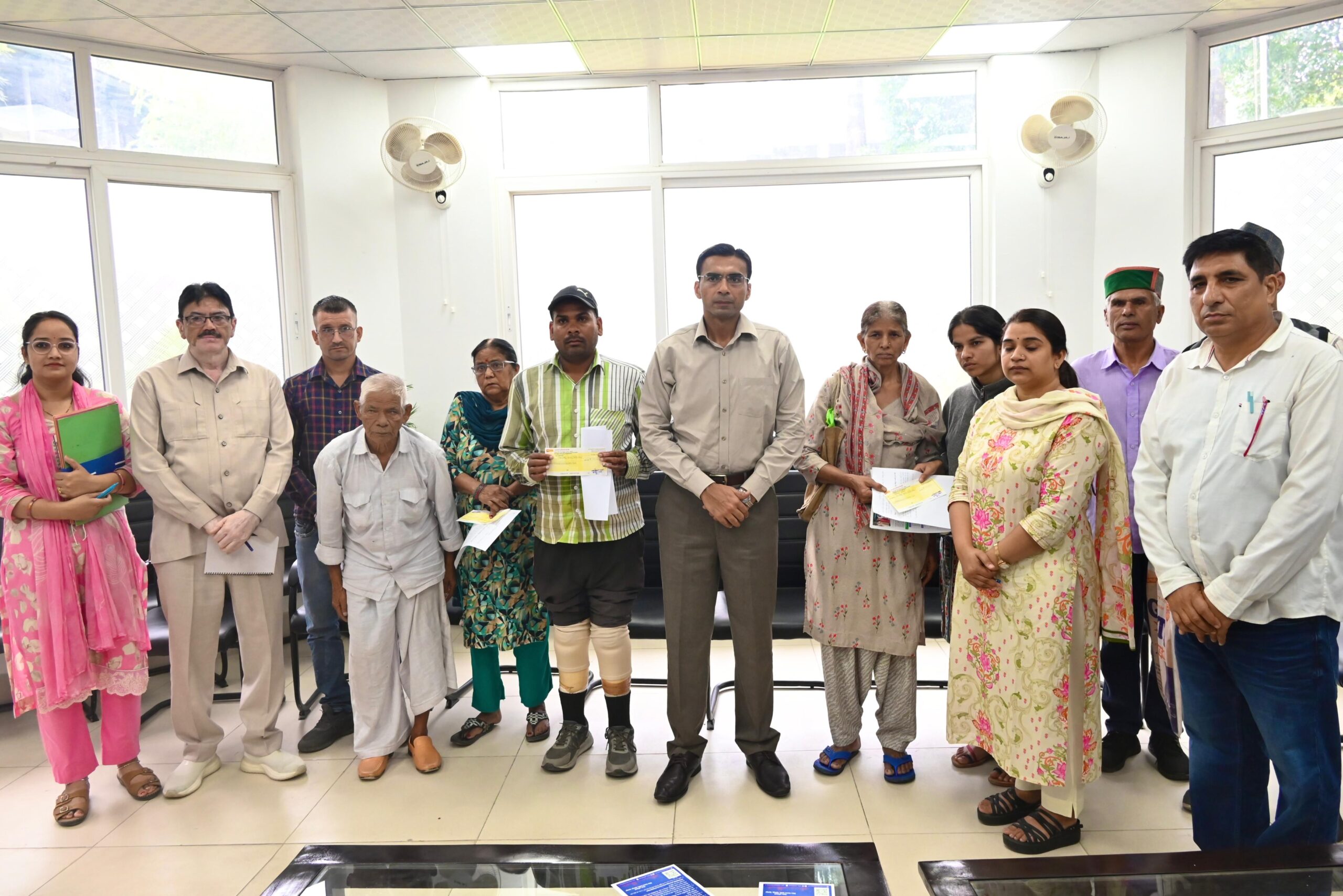 जिलाधिकारी सविन बसंल सक्रिय राइफल क्लब फंड से आज 06 असहाय, अक्षम और जरूरतंद लोगों को 1.50 लाख की आर्थिक सहायता चेक प्रदान किए गए प्रत्येक लाभार्थी को वितरित किए 25-25 हजार आर्थिक सहायता के चैक प्रदान किए।