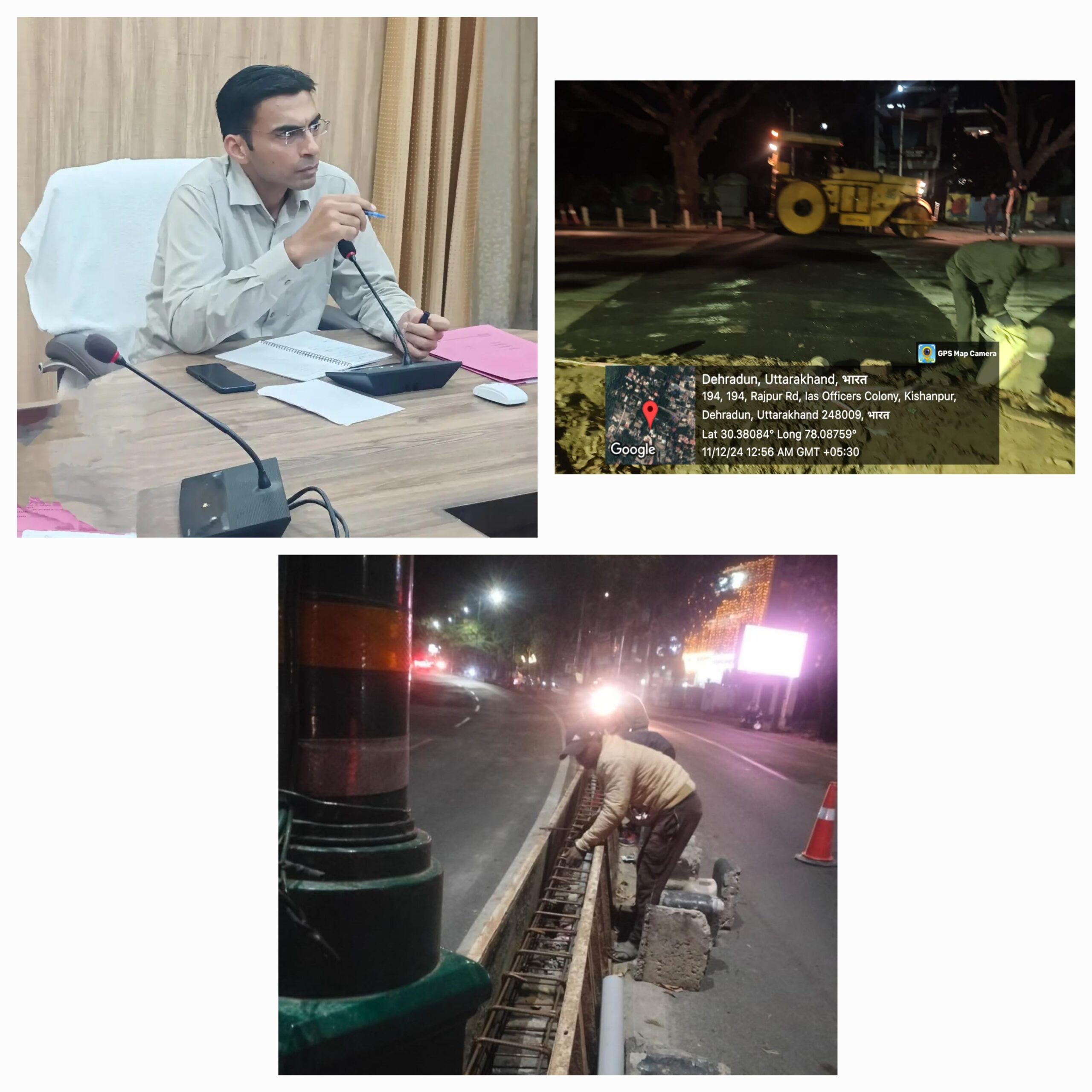 जबकि राजपुर रोड में पुरानी जिर्णशीर्ण डिवाइड को हटाकर नई डिवाइड लगाने का कार्य योजना स्तर पर जारी है। डीएम के निर्देशों के अनुपालन में सड़क सुरक्षा के कार्यों को युद्ध स्तर पर मानक के अनुरूप पूर्ण किया जा रहा हैं।