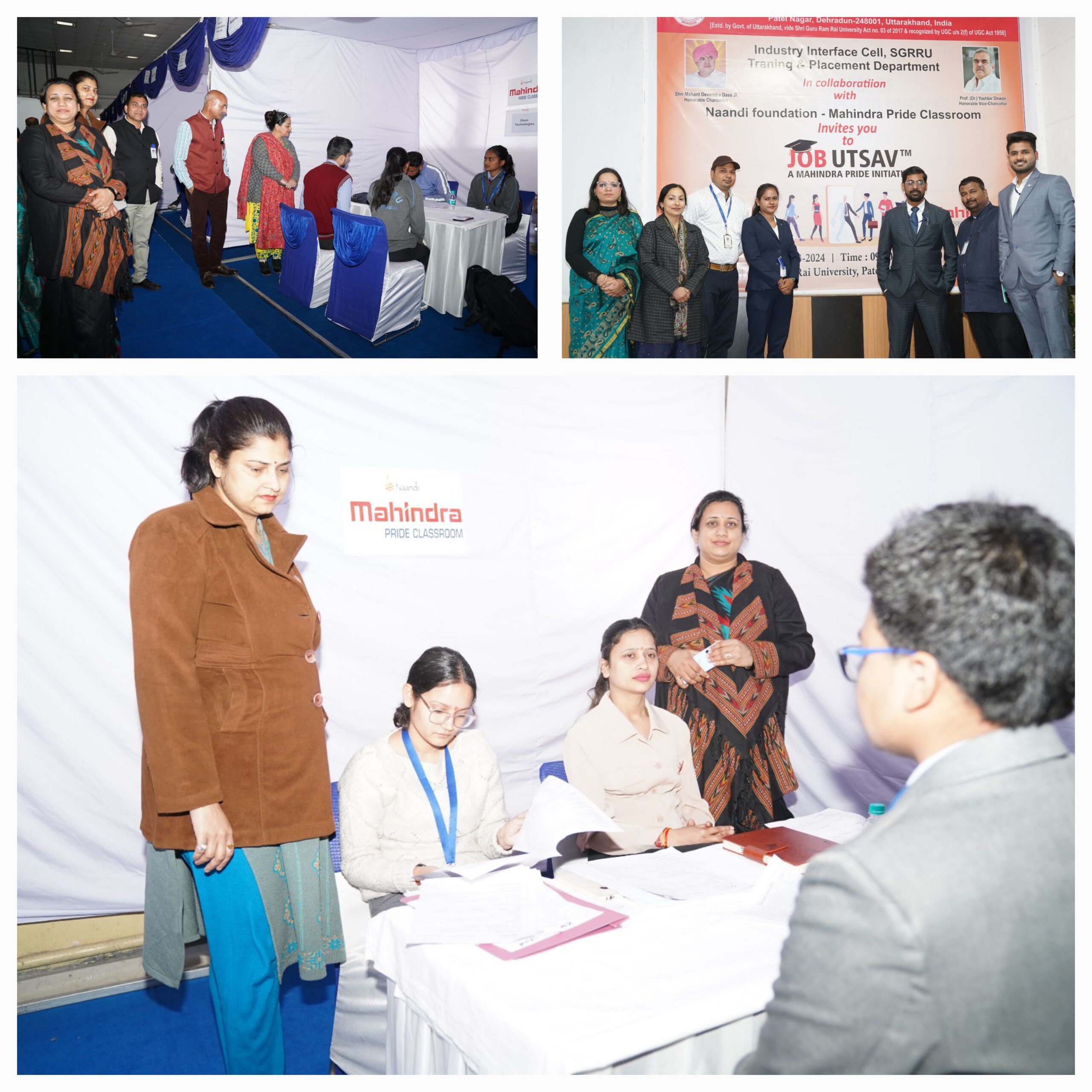 एसजीआरआरयू में रोजगार मेले का हुआ आयोजन फार्मास्यूटिकल, आई.टी., मैनेजमेंट, एग्रीकल्चर, आटोमाबाइल, रियल इस्टेट, एल एण्ड टी, टाइम्स आफ इण्डिया, पतंजलि, हाइक एजुकेशन सहित 25 कंपनियों ने कैंपस प्लेसमेंट किया।