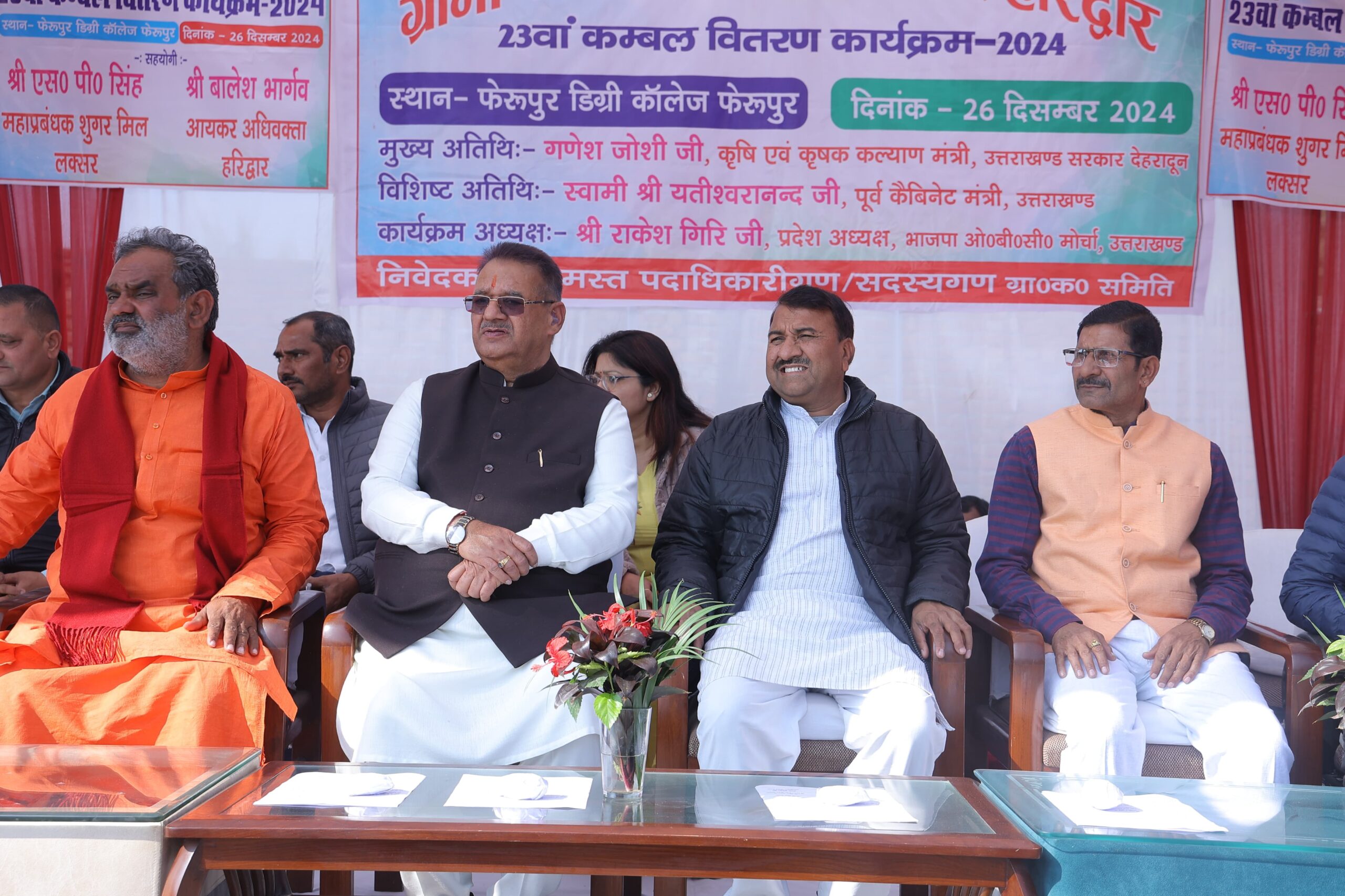 गणेश जोशी ने ग्रामीण कल्याणकारी समिति हरिद्वार द्वारा फेरूपुर डिग्री कॉलेज में 23वीं बार कम्बल वितरण का कार्यक्रम में बतौर मुख्य अतिथि प्रतिभाग किया