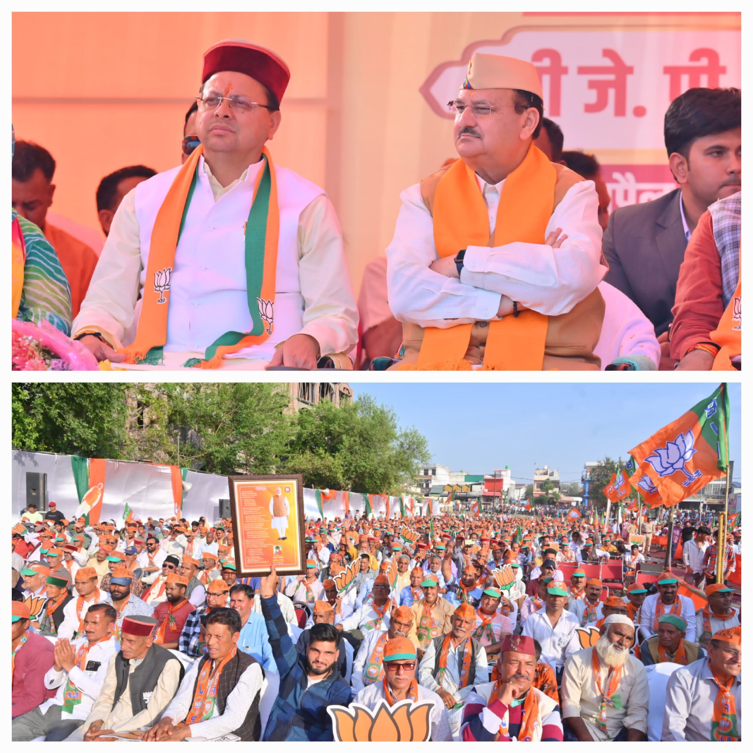 विकासनगर में भाजपा राष्ट्रीय अध्यक्ष और सीएम धामी ने गिनाई मोदी सरकार की 10 साल की उपलब्धियां।