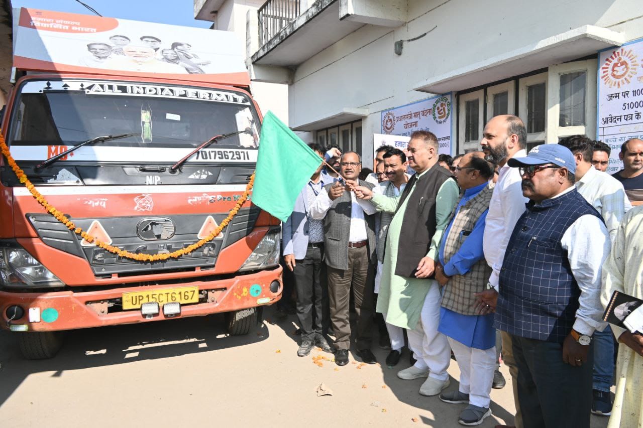 विकसित भारत संकल्प यात्रा रथ को हरी झंडी दिखाकर मंत्री गणेश जोशी ने किया रवाना