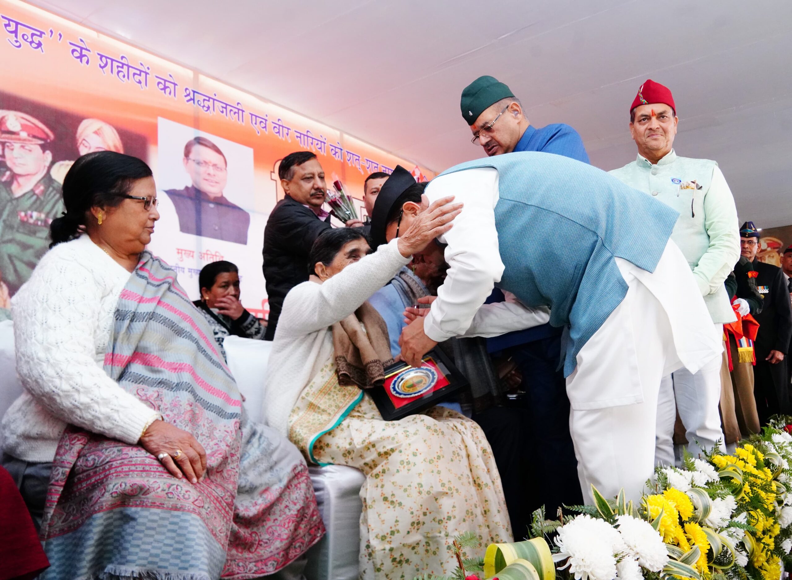 इस अवसर पर मुख्यमंत्री श्री पुष्कर सिंह धामी ने राज्य के शहीद सैनिकों की वीरांगनाओं और वीर माताओं को भी परिवहन निगम की बसों में निःशुल्क यात्र की घोषणा की है। समारोह के अंत में मुख्यमंत्री ने 1971 युद्ध के वीर सैनिकों और वीरनारियों का भी सम्मान किया।