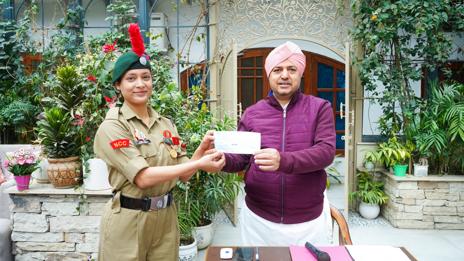 श्री गुरु राम राय विश्वविद्यालय के प्रेसीडेंट श्रीमहंत देवेन्द्र दास जी महाराज ने विश्वविद्यालय की ओर से उन्हें 51,000 रुपये (इक्यावन हज़ार रुपये) का चेक प्रदान कर सम्मानित किया।