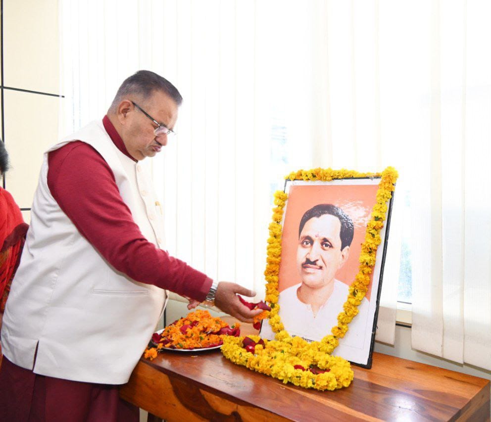 पंडित दीनदयाल उपाध्याय की पुण्यतिथि पर उन्हे श्रद्धांजलि अर्पित करते ग्राम्य विकास मंत्री गणेश जोशी