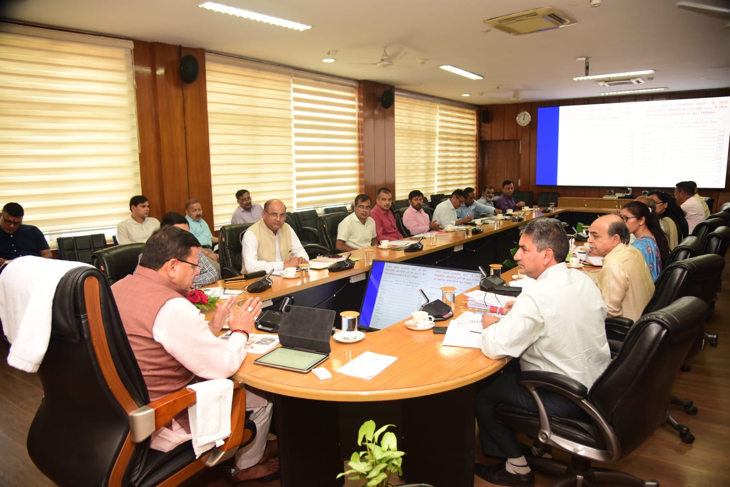 बैठक में सचिव श्री विनय शंकर पाण्डेय, सचिव कार्यक्रम क्रियान्वयन विभाग श्री दीपक कुमार गैरोला, वर्चुअल माध्यम से कमिश्नर कुमांऊ श्री दीपक रावत, सभी जिलाधिकारी, वरिष्ठ पुलिस अधीक्षक एवं संबंधित अधिकारी उपस्थित थे।