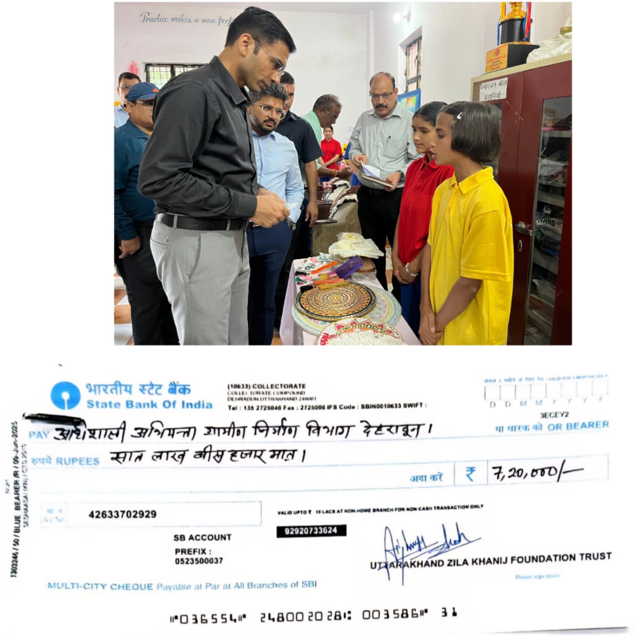 स्वीकृत धनराशि में से 60 प्रतिशत अर्थात रु0 7,20,000/- (रुपये सात लाख बीस हजार मात्र) अधिशासी अभियन्ता, ग्रामीण निर्माण विभाग, देहरादून को भुगतान हेतु जिला खनिज फाउण्डेशन न्यास के निर्धारित बैंक खाते से चौक निर्गत कर दिया गया है। शेष 40 प्रतिशत धनराशि रु0 4,80,000/- (रुपये चार लाख अस्सी हजार मात्र) की धनराशि उपयोगिता प्रमाण पत्र एवं तृतीय पक्ष द्वारा जाँच आख्या प्राप्त होने के उपरान्त जारी की जाएगी।