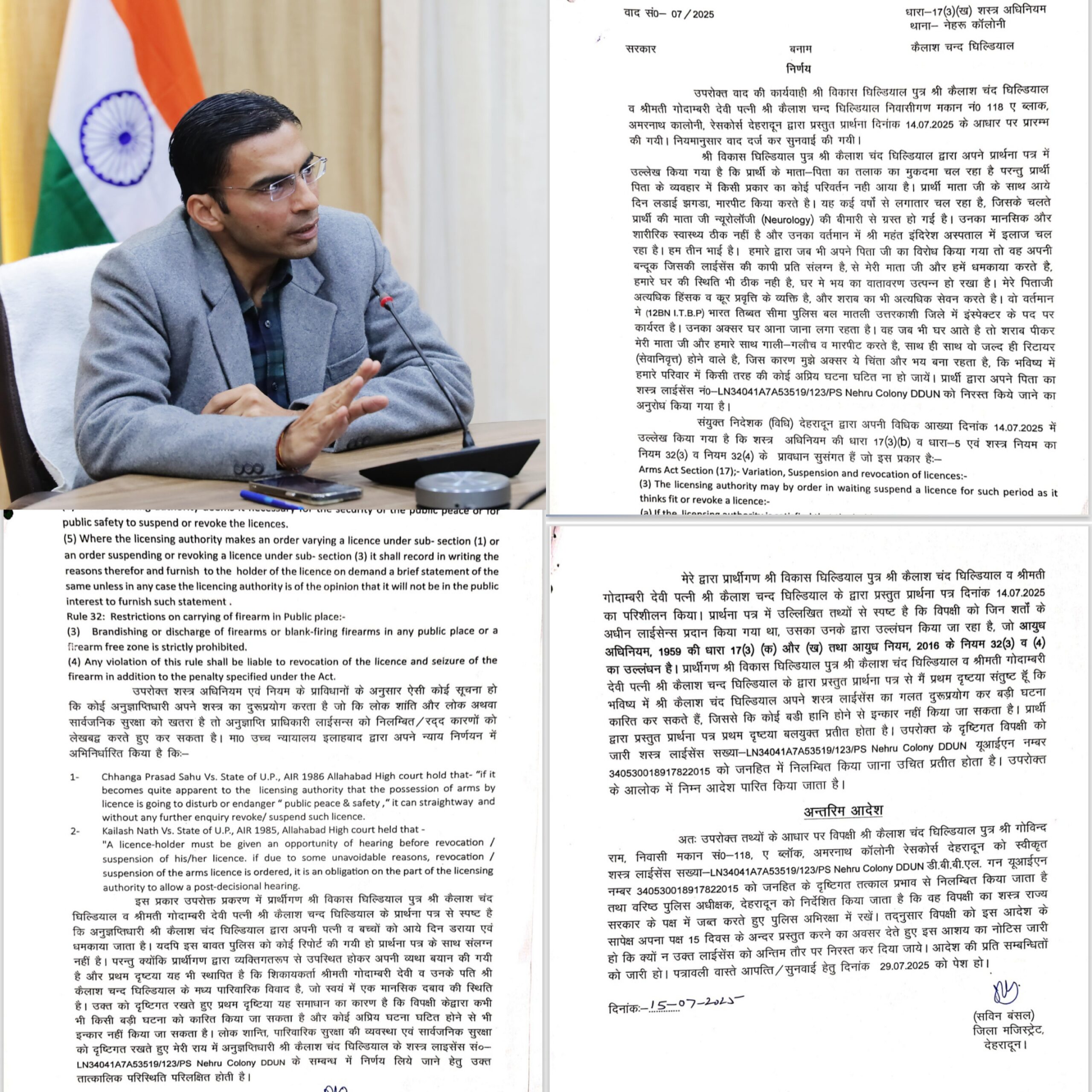 विशेषाधिकार का प्रयोग कर डीएम ने शस्त्र लाईसेंस को निलम्बित किया साथ ही पुलिस को सम्बन्धित के विरूद्ध मुकदमा दर्ज करने के भी निर्देश दिए